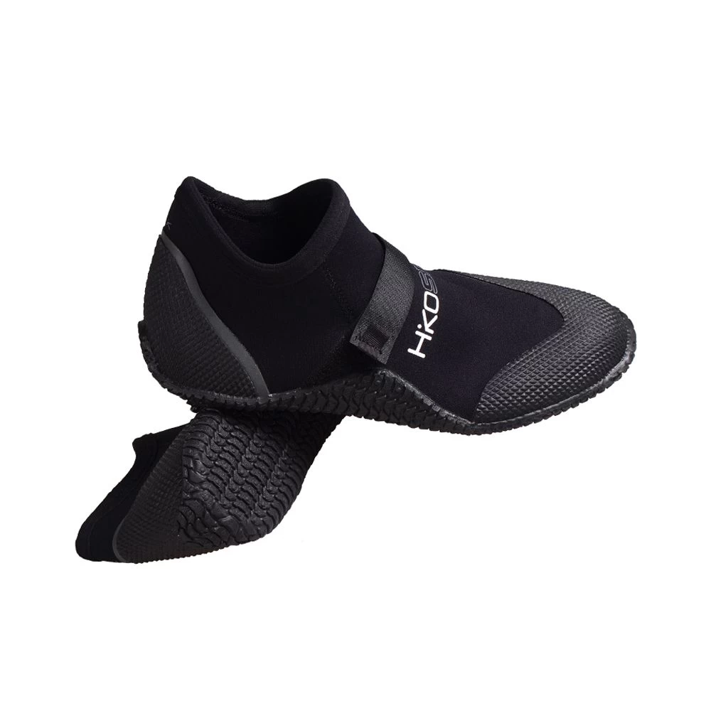 Chaussons néoprène classiques pour canoé kayak qui montent assez haut sur la cheville. La sangle réglable assure un bon maintien sur le dessus, des semelles de 3mm permettent la marche, renfort sur le dessus du pied pour la position canoé.