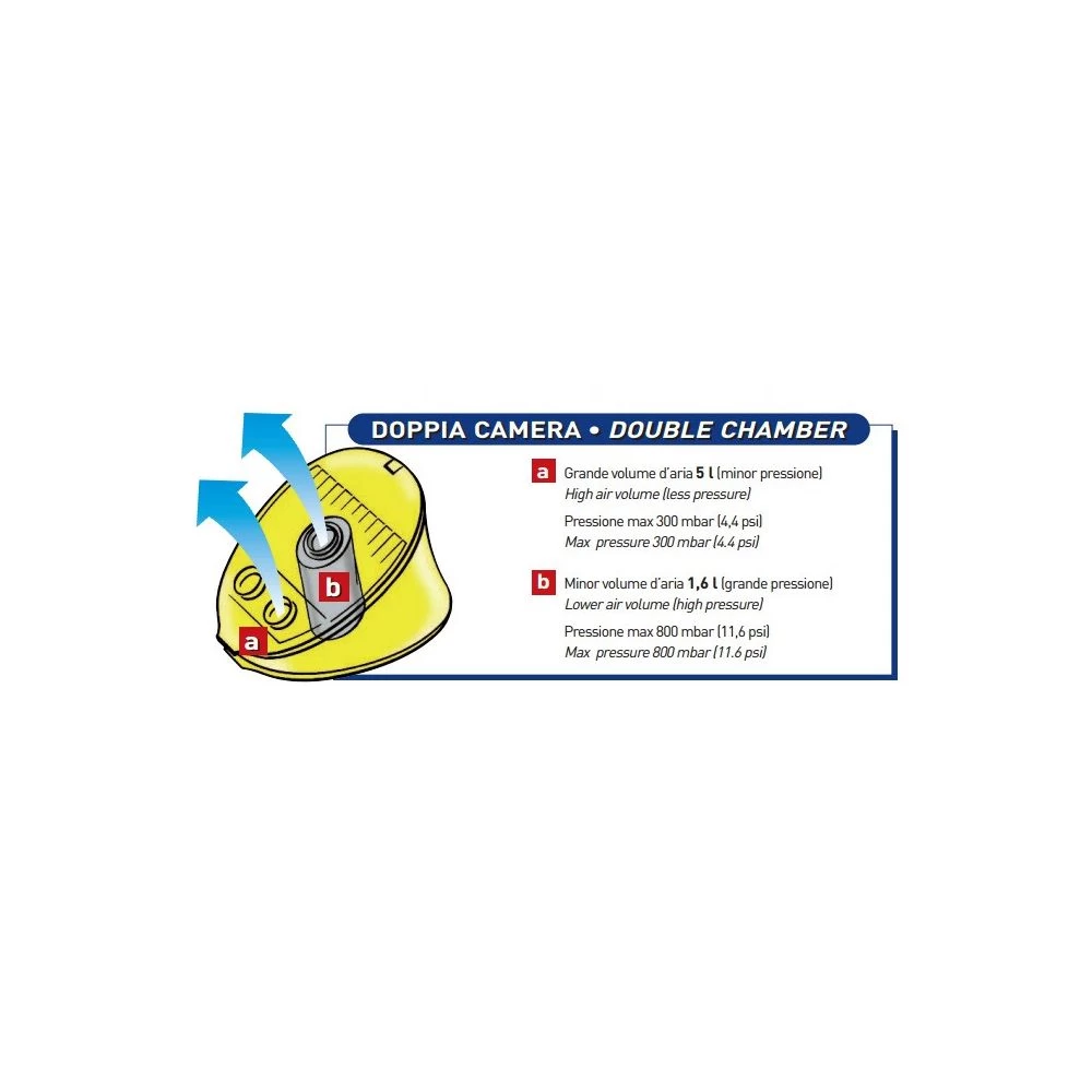 Volume total : 1650 cc – Volume de sortie : 1350 cc – Pression obtenue : 500 mbar