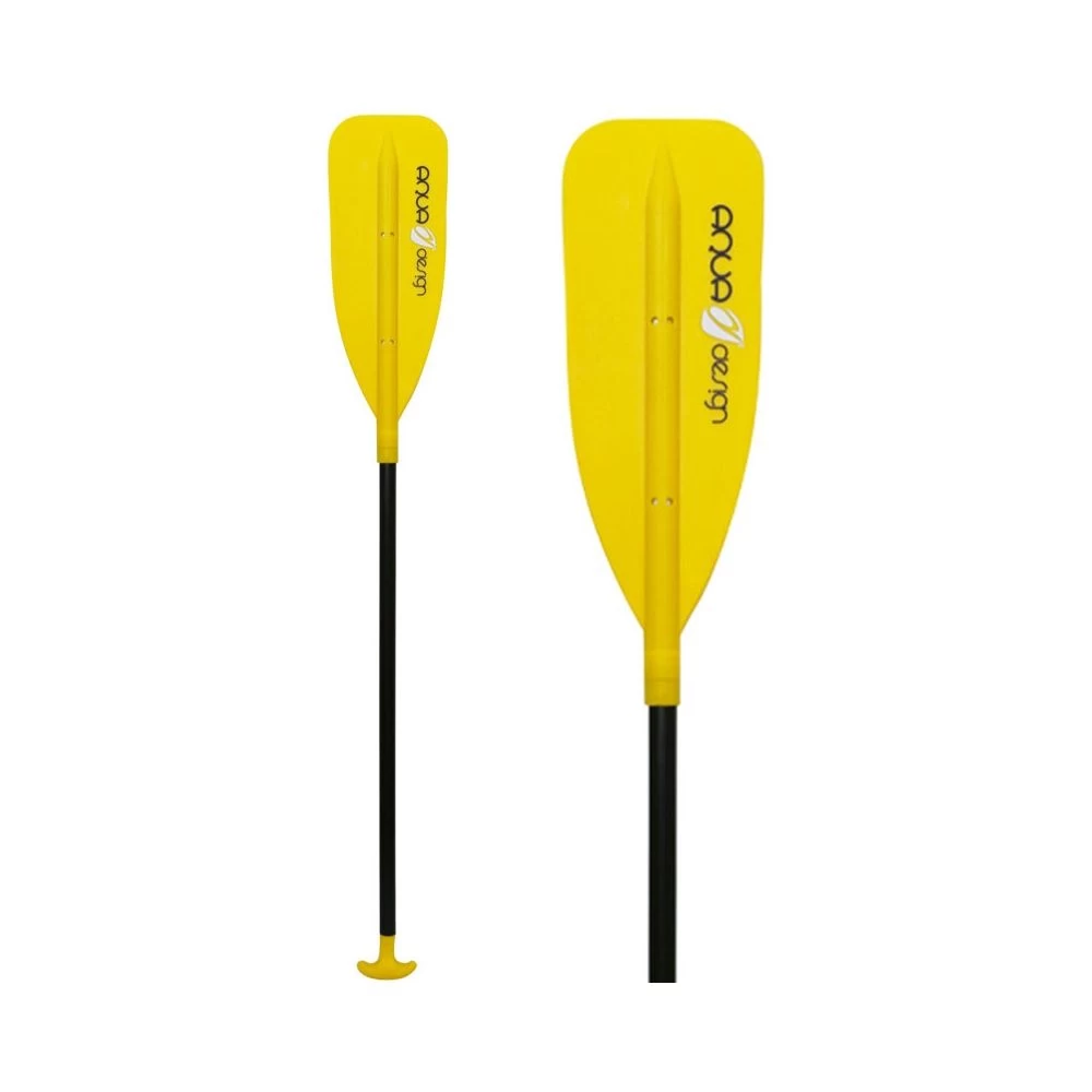 Pagaie Aquadesign tres simple et tres re?sistante. Tres bon rapport qualite/prix. Ideale pour toutes les embarcations : canoe gonflable, raft, canoe ou kayak rigide, annexe. Pagaie simple a olive de prise en main et pale en polypropylene / Tube en aluminium trempe gaine / Disponible en bleu, jaune et rouge