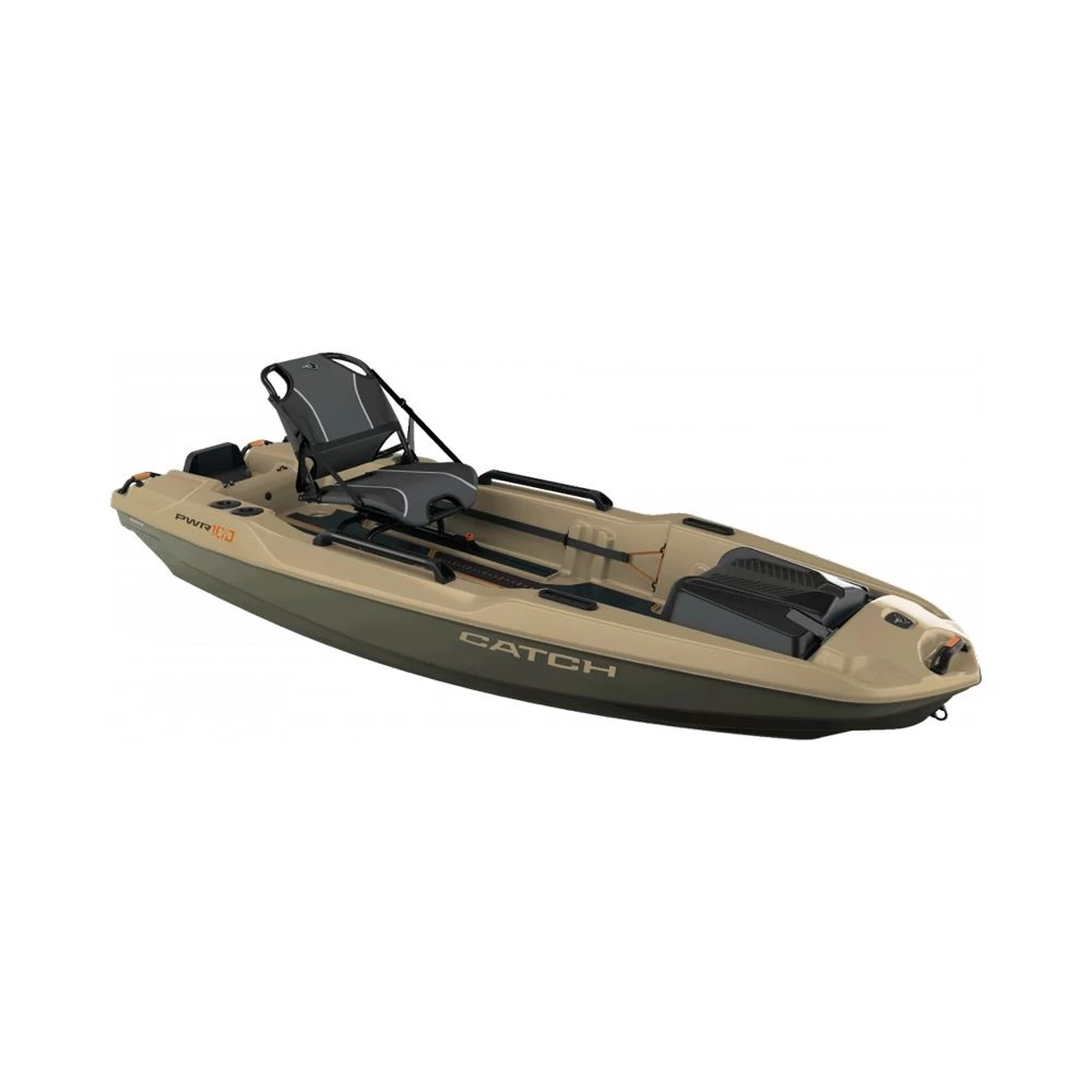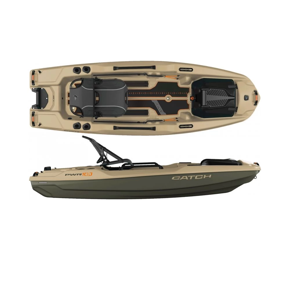 Monté sur des rails coulissants, le nouveau siège pivotant Ergo360 avec dossier réglable supporte jusqu’à 135 kg. Le système de siège pivotant coulissant à 360 degrés entièrement inclinable vous permet de faire face facilement dans toutes les directions et vous assure un confort optimal tout au long de la journée. Le kayak peut accueillir un moteur à gaz ou électrique (jusqu’à 2,5 ch).Le CATCH PWR 100 est précâblé afin que vous puissiez ranger facilement votre batterie dans le compartiment avant tout en connectant facilement votre moteur à l’arrière.