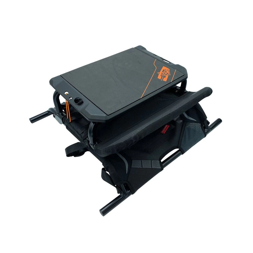 Une fois le siège rabattu, vous pourrez ainsi travailler sur votre ligne de pêche ou autre en toute simplicité et confort.