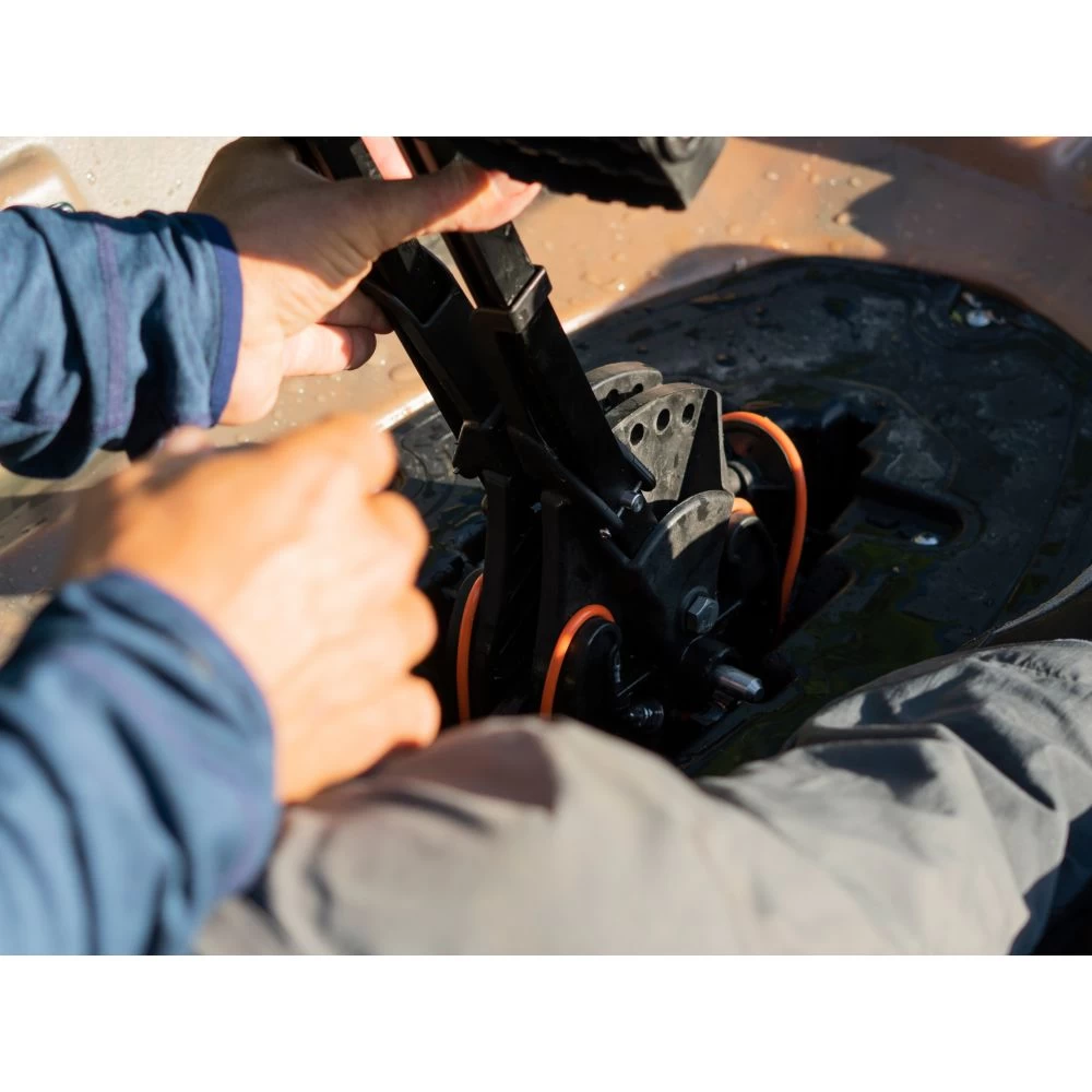Le système de propulsion à pédales HYDRYVE permet de manœuvrer facilement en eau peu profonde ou d’éviter les plantes aquatiques et de parcourir des distances importantes sans vous fatiguer à la simple force de vos jambes. Ce système fait appel à une conception modulaire. Il est donc facile à réparer en cas de problème.