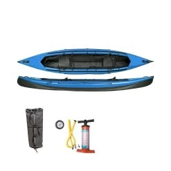 En combinant le meilleur de la technologie des kayaks pneumatiques et pliants, on obtient avec le scubi 2 XL un hybride issu des deux systèmes. L’ossature réduite au minimum donne au kayak la rigidité, la structure et la capacité d’enfoncement dans l’eau nécessaire à de meilleures performances nautiques, si on le compare aux kayaks juste gonflables de cette taille dont la quille est plate.
