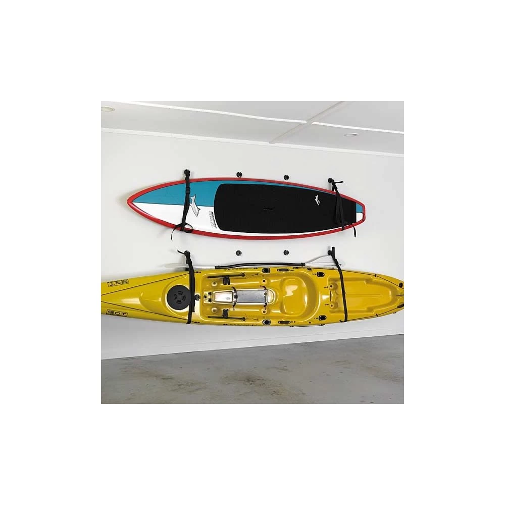 Le harnais mural StarPort libère de l’espace dans votre garage, votre hangar ou votre cour en vous permettant d’accrocher votre embarcation au mur. Si vous avez besoin d’accrocher 2 planches, elles peuvent s’empiler avec 2 harnais.