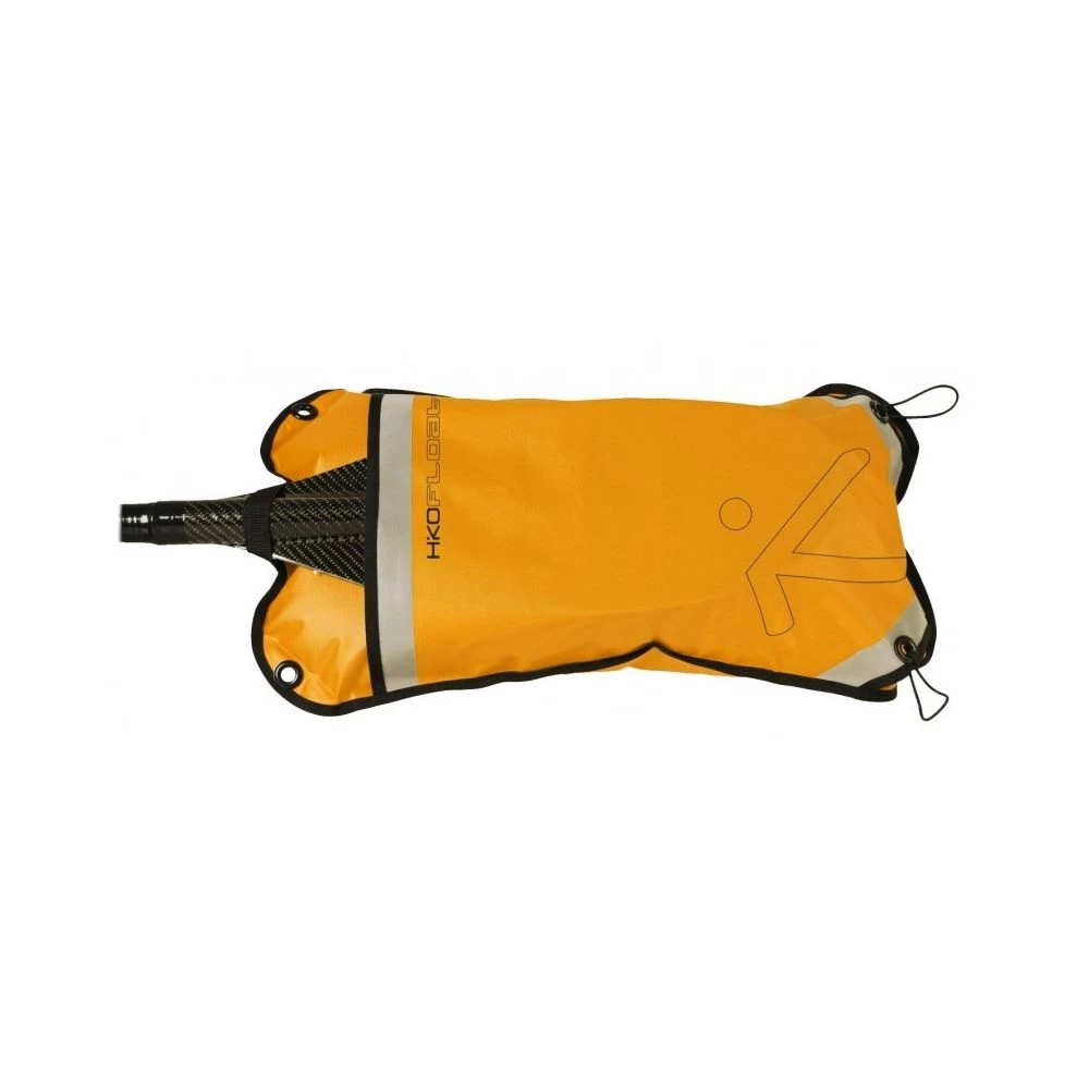 Le paddlefloat peut être pré-gonflé et attaché sur le pont du kayak, ou dégonflé et fixé sur la pagaie de rechange – en cas de chavirage, calez l’extrémité de votre pagaie sous les lignes de vie du kayak, insérez votre paddle float sur l’ autre extrémité, et gonflez à fond à l’aide de la valve – vous installez ainsi une sorte de balancier-stabilisateur insubmersible qui vous permet de remonter dans votre bateau.