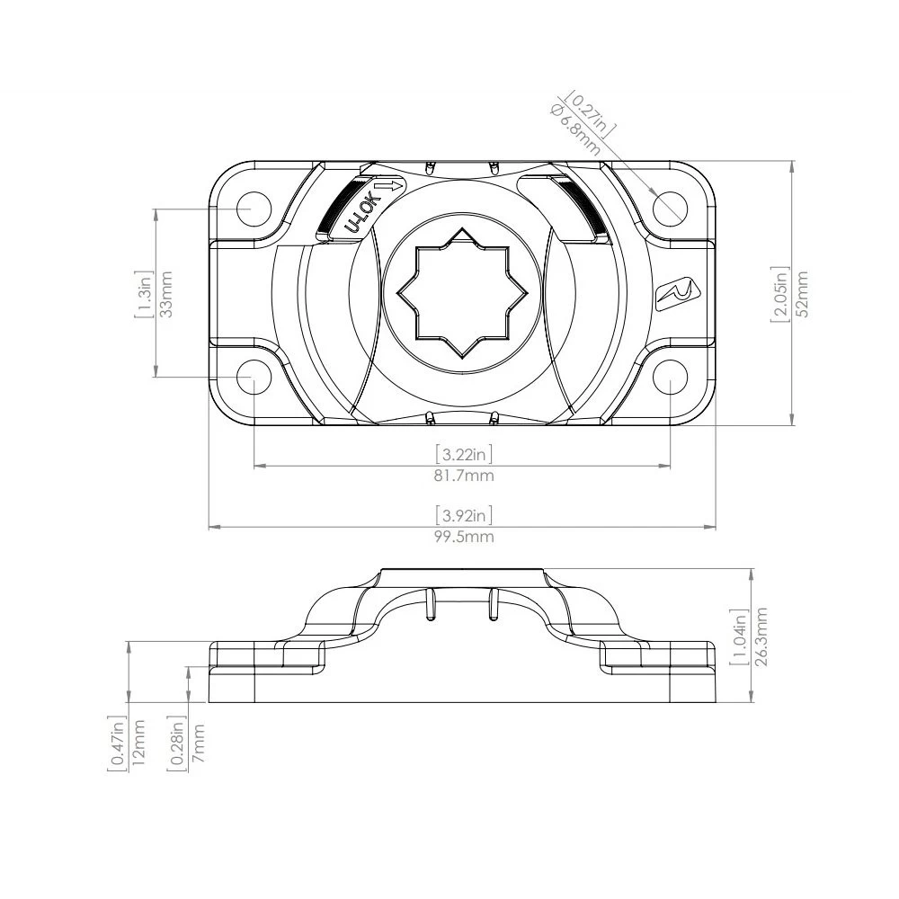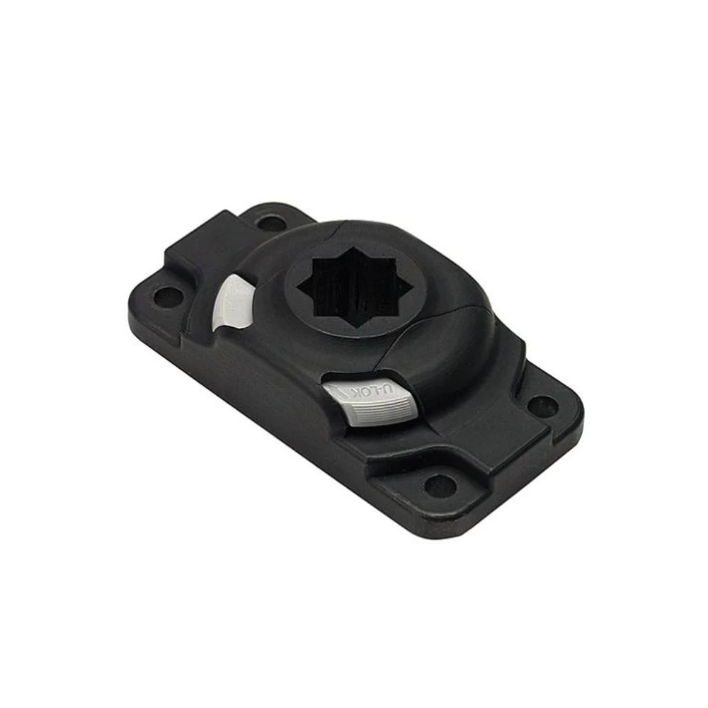 Ce receveur se fixe à plat avec quatre vis (non fournies) ou se place sur un rail avec un simple perçage. Cette configuration est présente sur toutes embarcations: barques, annexes, kayaks…