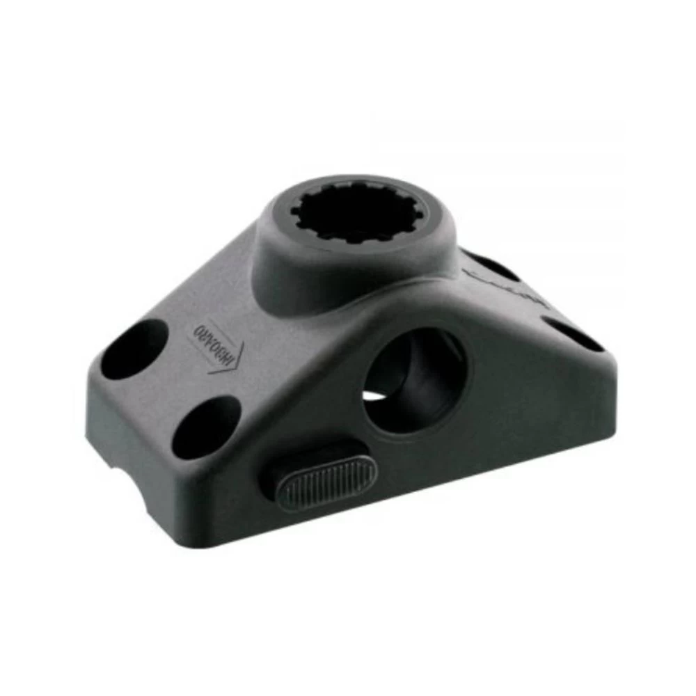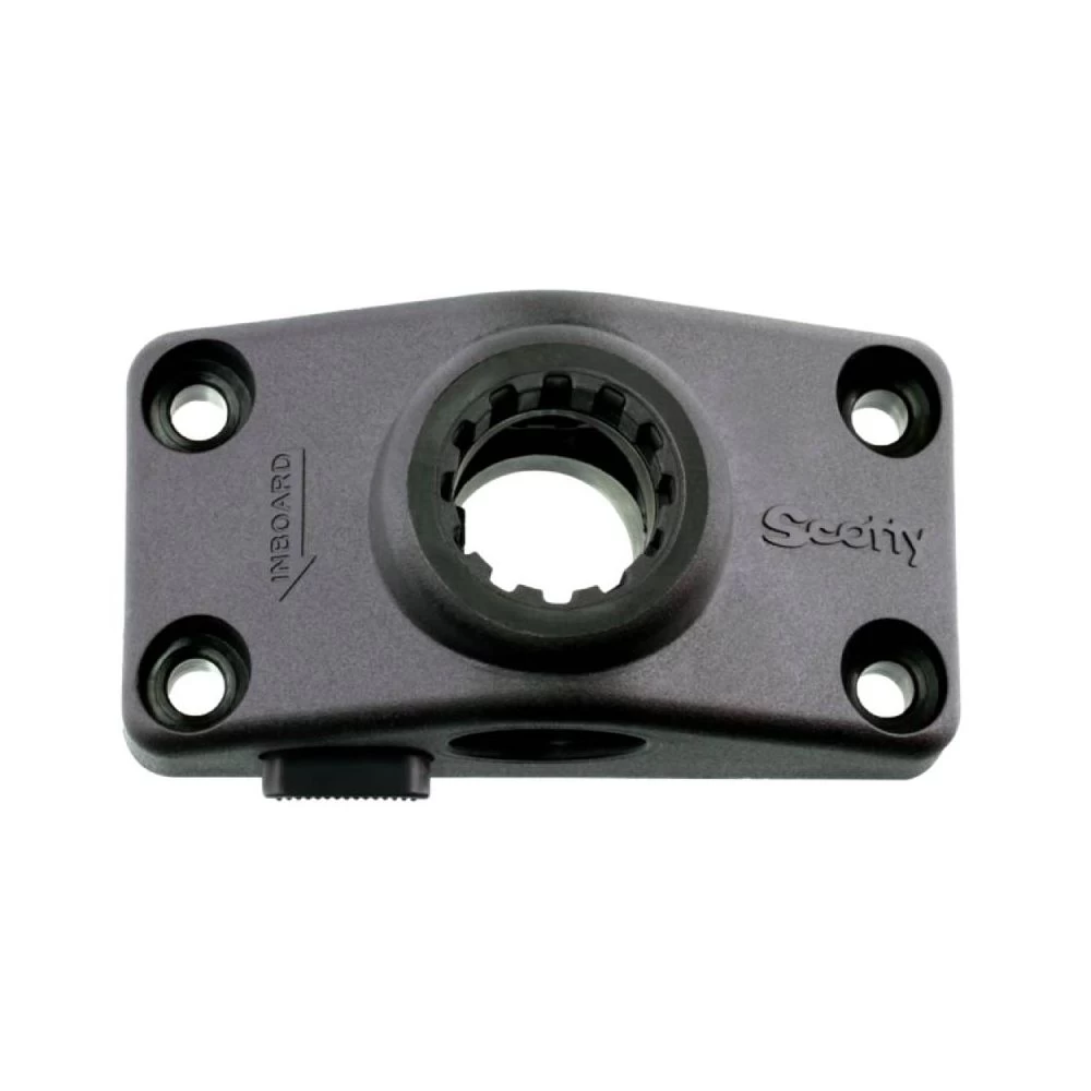 Pour utiliser le nouveau système de montage « lock-down » Scotty, choisissez simplement la meilleure direction pour pêcher et insérez le porte-canne ou l’accessoire, en poussant le poteau vers le bas dans le support.