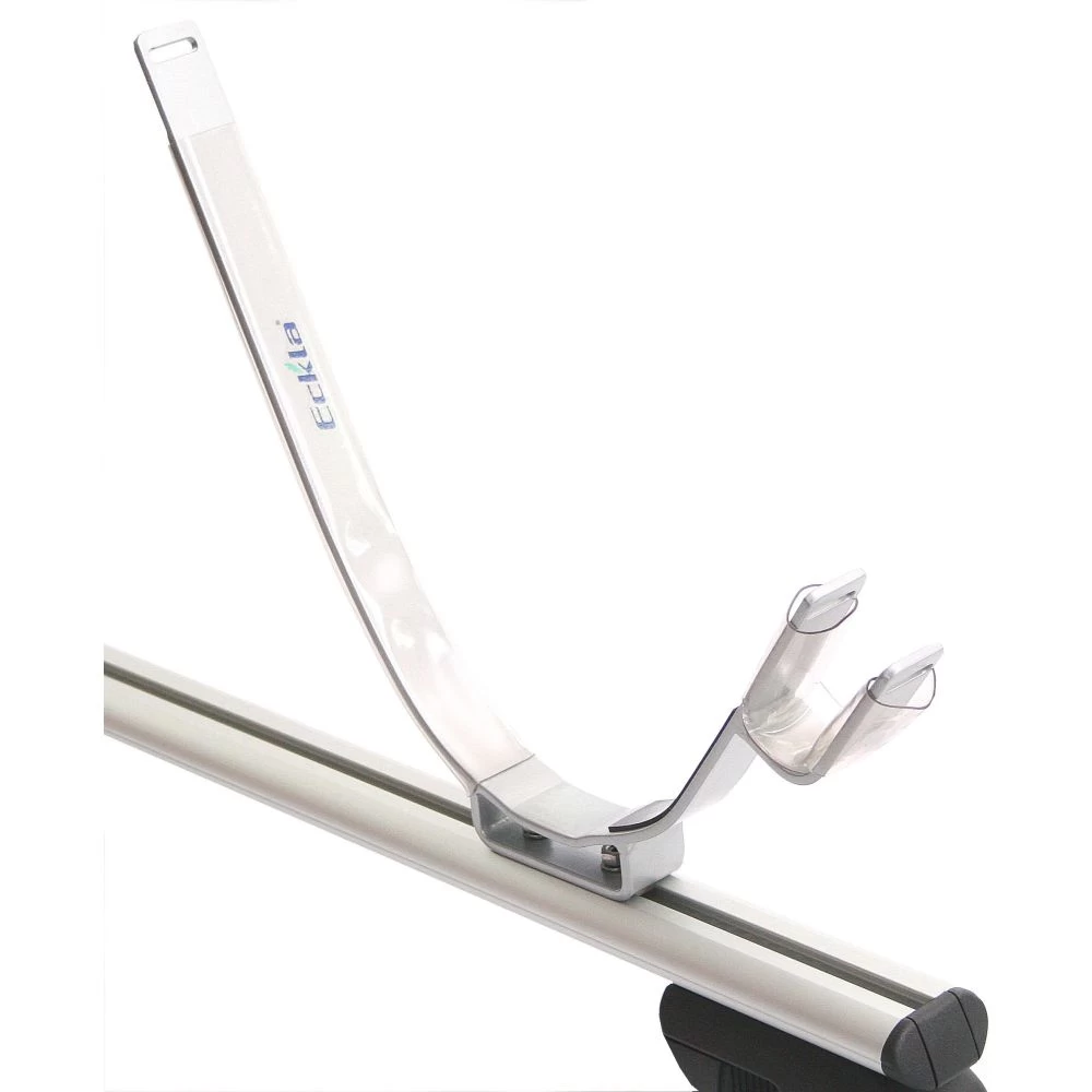 Cadre ovale avec porte-pagaie adapté à tous les systèmes du véhicule avec système rainure (20 – 25 mm) en T. Le support ovale est recouvert de plastique robuste pour éviter tout dommage pendant le transport.